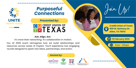 UNITE North Texas brings together nonprofit, business, and community leaders who believe in the power of partnership to create lasting impact. Each quarterly gathering is thoughtfully designed to help you connect, collaborate, and create impact through meaningful conversations and practical learning.